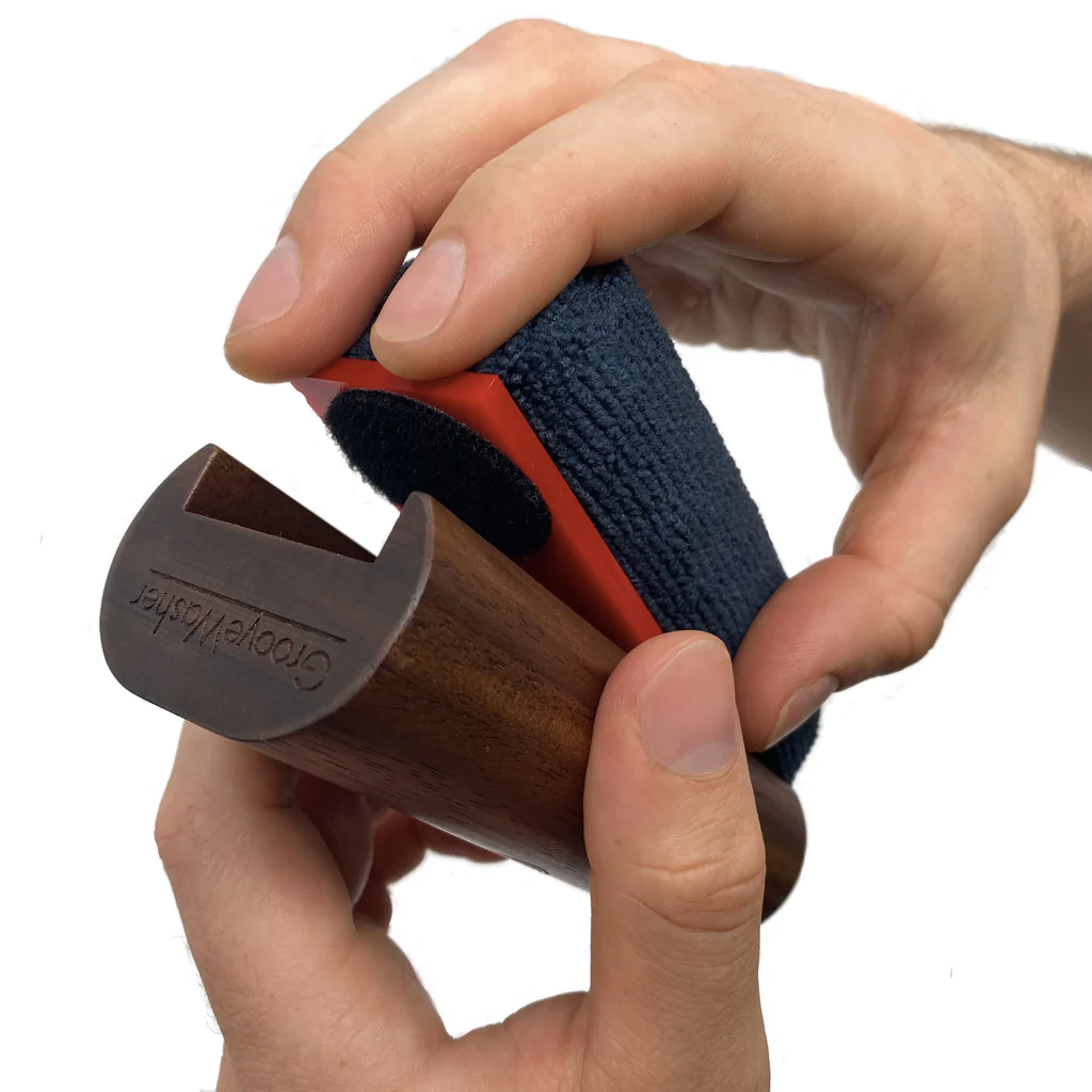 Highly absorbent split-fibre microfibre fabric. Black terry close style. Works well on heavily soiled records or for fine grooming just before play.