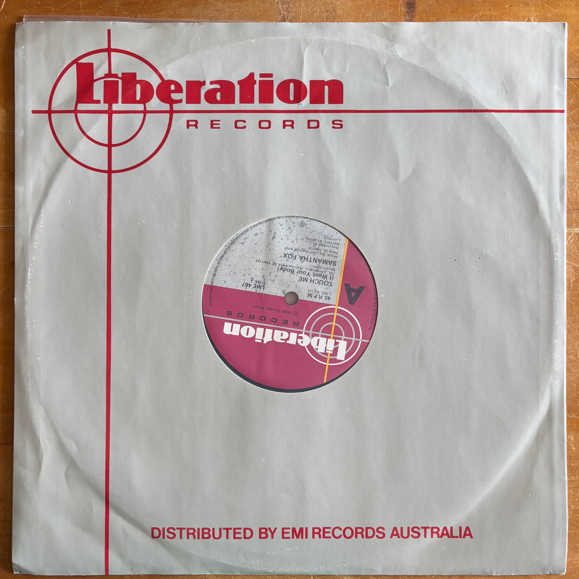 This is a preloved vinyl record of Touch Me (I Want Your Body), by Samantha Fox. This single was first released in 1986 and this is an original Australian pressing from that year.