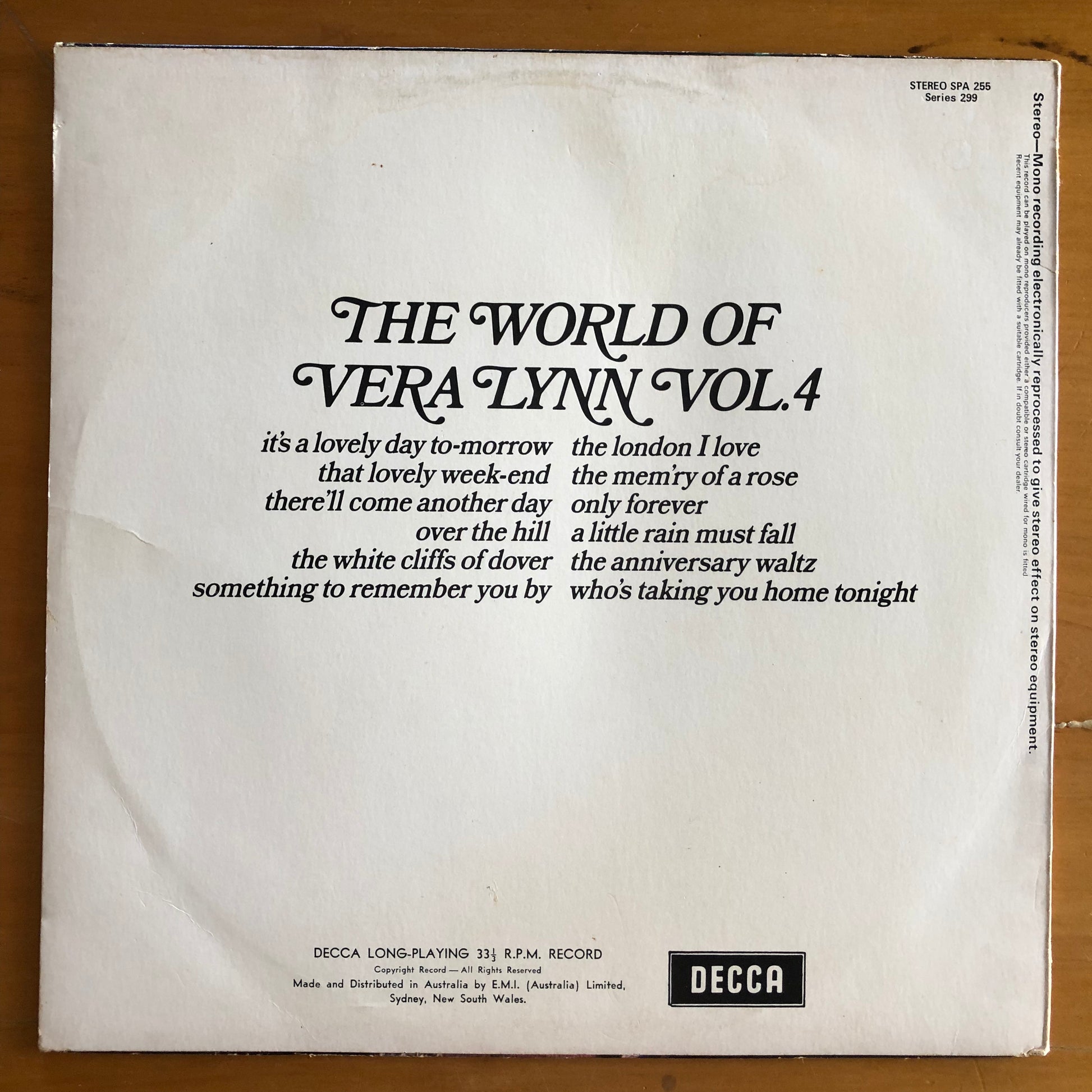 This is a preloved vinyl record of The World Of Vera Lynn Vol. 4 by Vera Lynn. This album was first released in 1972 and this is an Australian pressing from that year.